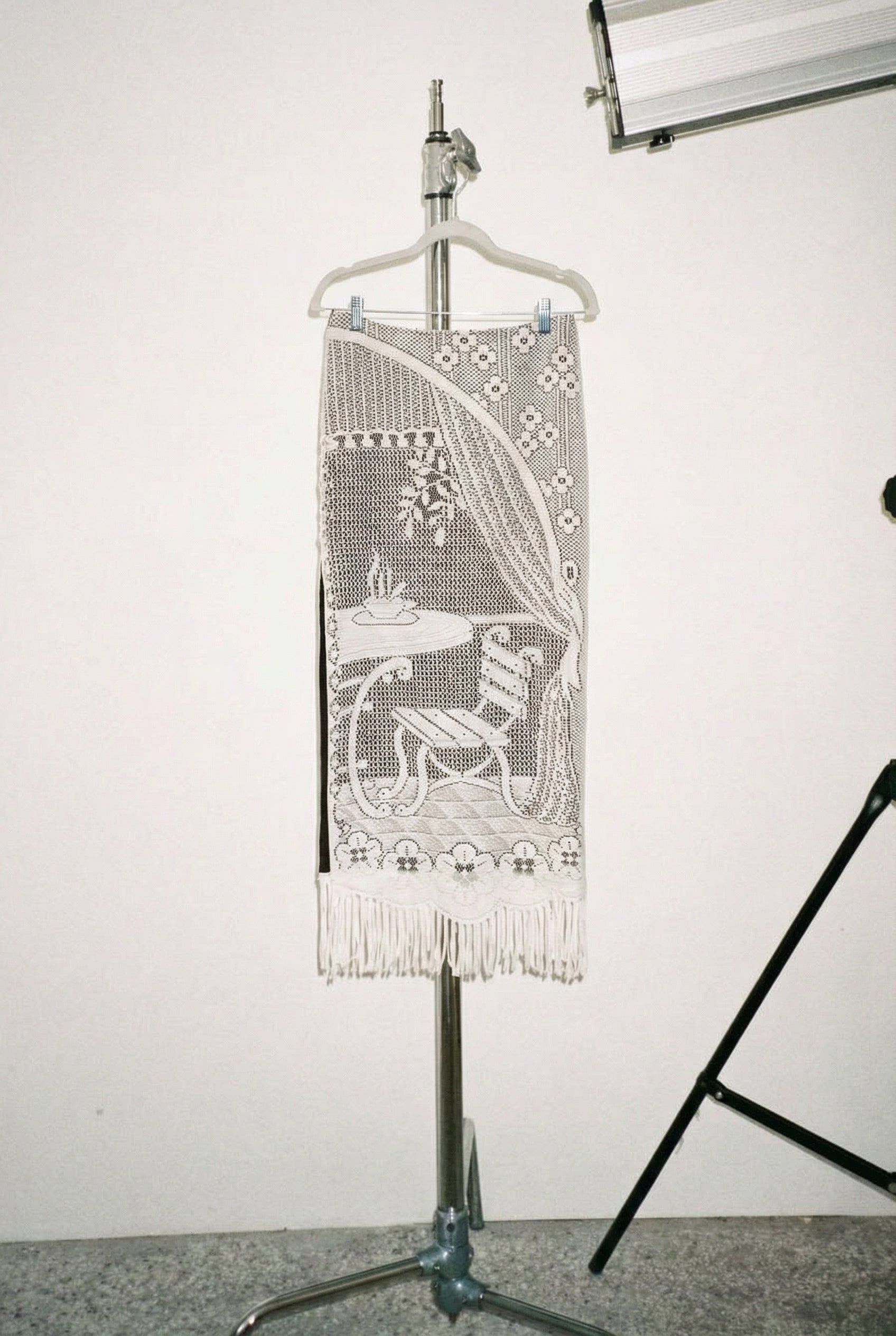 • Recycled vintage lace curtain fabric• One of a kind piece• Long skirt with a side slit• Made in Paris• 100% wool lining...